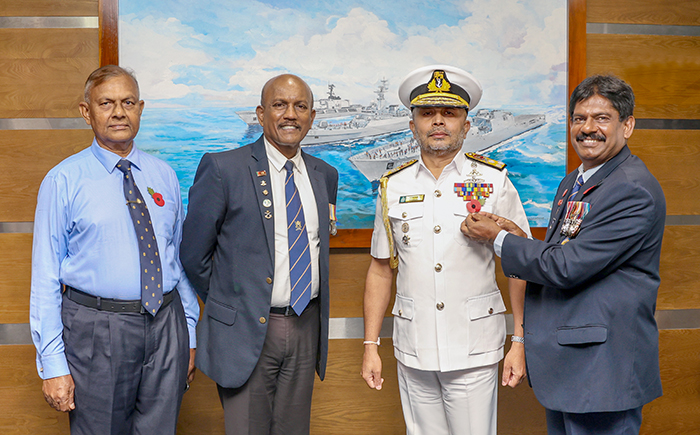 The President of the Sri Lanka Armed Forces Veterans’ Association Poppy Committee, Major General Mahinda Mudalige (Retd), pinned a poppy on Commander of the Navy Vice Admiral Kanchana Banagoda at Navy Headquarters on 04 Nov 25. This solemn act was conducted in commemoration of Remembrance Day 2025, honouring the service and sacrifice of fallen military personnel....