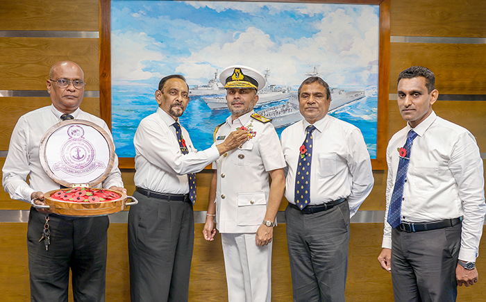 வீரமரணம் அடைந்த போர்வீரர்களின் நினைவேந்தலின் அடையாளமாக கடற்படைச் சங்கத்தின் உறுப்பினர்கள் கடற்படைத் தளபதிக்கு பொப்பி மலரொன்று அணிவித்தனர்