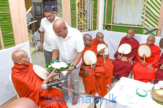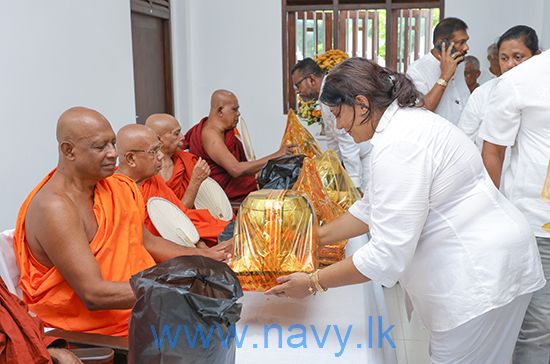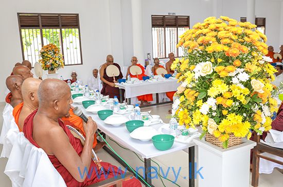 ඒ අනුව, අභිනව දෙමහල් සංඝාවාසය මහා සංඝරත්නය වෙත පුජා කිරීමෙන් අනතුරුව, සර්වරාත්රික පිරිත් සජ්ජායනාවක් සහ ගරුතර මහා සංඝරත්නය 100 නමක් විෂයෙහි දහවල් දානය හා පිරිකර පූජා කිරීම නාවික හමුදාධිපති වයිස් අද්මිරාල් ප්රියන්ත පෙරේරා ගේ සහ නාවික හමුදා සේවා වනිතා ඒකකයේ ගරු සභාපතනී, මාලා ළමාහේවා මැතිණියගේ ප්රධානත්වයෙන් සිදුකෙරිණි.