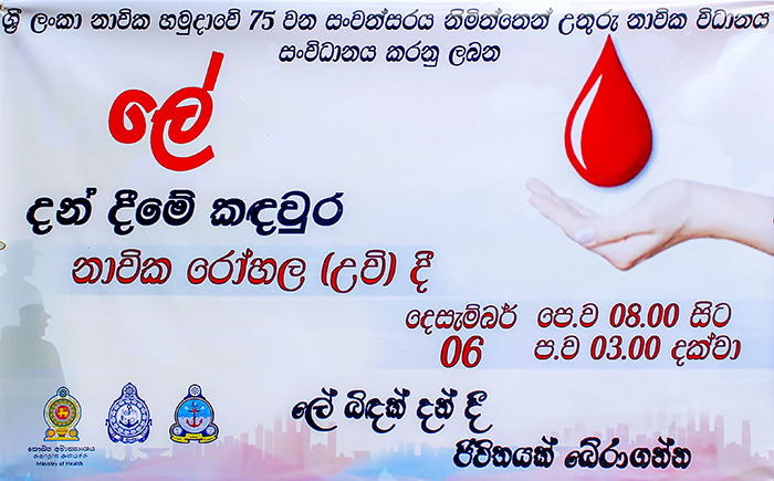 ශ්රී ලංකා නාවික හමුදාවේ 75 වෙනි සංවත්සරය වෙනුවෙන්, සමාජමය, පාරසරික හා සදාචාරාත්මක මුලපිරීම් ආවරණය වන පරිදි නාවික හමුදාව ආගමික, පාරසරික හා සමාජ සත්කාරක වැඩසටහන් මාලාවක් පවත්වන ලද අතර, ඒ යටතේ සංවිධානය කළ ලේ දන්දීමේ වැඩසටහනක්, උතුරු විධාන නාවික රෝහල් පරිශ්රයේදී 2025 දෙසැම්බර් මස 06 වැනි දින පැවැත්විණි.