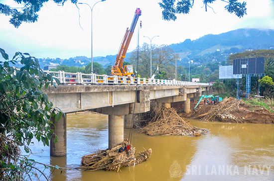 අධික වර්ශාපතනය හේතුවෙන් මහවැළි ගඟේ ජල මට්ටම ඉහල යෑමෙන්, ජලයේ ගසාගෙන පැමිණි විශාල දැව කඳන් සහ උනපඳුරු ඇතුළු අවශේෂ, පේරාදෙණිය ගැටඹේ දියකපනාතොට සහ ලේවැල්ල පාලම් තුල සිරවී, එම පාලම් ඔස්සේ ජලය ක්රමවත්ව බැස යාමට ඇතිවු අවහිරතා ඉවත් කිරීම වෙනුවෙන් නාවික හමුදා කිමිදුම් සහය හා ශිල්පීය දායකත්වය ලබාදීම 2025 දෙසැම්බර් මස 19 දින සිදුකෙරිණි.