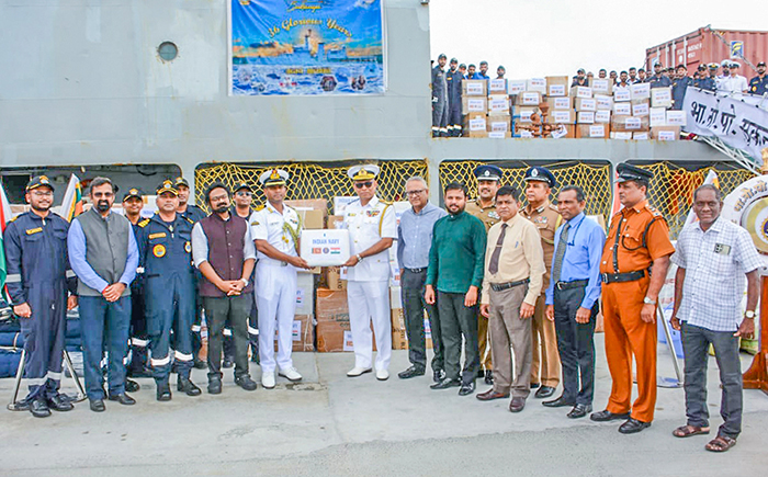 சீரற்ற வானிலையால் பாதிக்கப்பட்ட மக்களுக்கு மனிதாபிமான உதவிகளை வழங்க இந்திய போர்க்கப்பல்கள் தீவுக்கு வந்தன