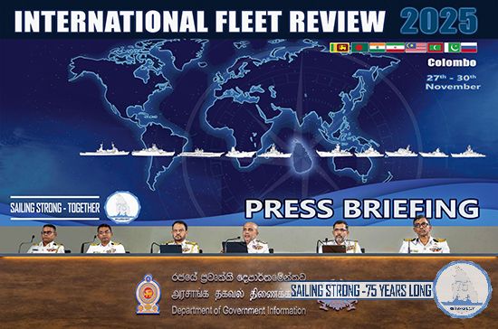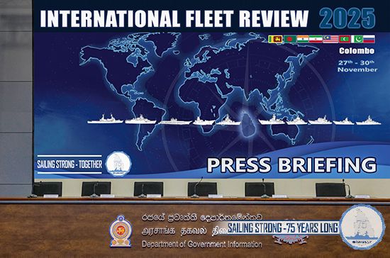 இலங்கை கடற்படையின் பெருமைமிக்க 75 வது ஆண்டு நிறைவை முன்னிட்டு, கடற்படை மரபுகளுக்கு முன்னுரிமை அளித்து, சமூக, நெறிமுறை மற்றும் சுற்றுச்சூழல் முன்முயற்சிகளை உள்ளடக்கிய தொடர் நிகழ்ச்சிகளை நடத்த கடற்படை தயாராக உள்ளதுடன், இதன் கீழ், “Sailing Strong Together” என்ற கருப்பொருள் நடைபெறும். சர்வதேச போர்க்கப்பல்கள் கண்காணிப்பு - 2025 குறித்த ஊடக சந்திப்பு இன்று 2025 நவம்பர் 24 ஆம் திகதி அரசாங்க தகவல் திணைக்கள வளாகத்தில் கடற்படைத் தளபதி வைஸ் அட்மிரல் கான்சன பானகொட அவர்களின் தலைமையில் நடைபெற்றது.