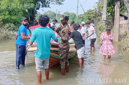 வெள்ளத்தால் பாதிக்கப்பட்ட மக்களுக்கு மனிதாபிமான உதவி மற்றும் பேரிடர் நிவாரணம் வழங்குவதற்காக முழு தீவையும் உள்ளடக்கிய ஒரு சிறப்பு திட்டத்தை கடற்படை செயல்படுத்தியுள்ளது. இதன் கீழ், நீர் வழங்கல் அமைப்புகள், மின்சார அமைப்புகள் மற்றும் பாதைகளை புணரமைத்தல், மருத்துவ சேவைகள், உலர் உணவு மற்றும் குடிநீர் வழங்குதல் ஆகியவற்றில் கடற்படையின் உதவியானது இன்று (2025 டிசம்பர் 02) வழங்கப்பட்டது.