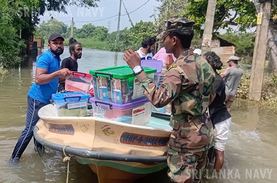 வெள்ளத்தால் பாதிக்கப்பட்ட மக்களுக்கு மனிதாபிமான உதவி மற்றும் பேரிடர் நிவாரண நடவடிக்கைகள் உள்ளிட்ட அத்தியாவசிய சேவைகளை வழங்க கடற்படை உதவுகிறது