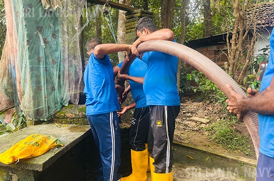 மேலும், கடற்படை இன்று (2025 டிசம்பர் 03) மீதொடமுல்ல, அனுராதபுரம் மற்றும் ஆராச்சிகட்டுவ ஆகிய இடங்களில் நிறுவப்பட்ட கடற்படையின் நடமாடும் சமையலறை வாகனங்கள் (Mobile Kitchen) மூலம் வெள்ளத்தால் பாதிக்கப்பட்ட மக்களுக்கு சமைத்த உணவு மற்றும் கண்டியின் தெல்தெனிய பகுதியில் நிறுவப்பட்ட கடற்படையின் நடமாடும் மீள் நீர் சுத்திகரிப்பு அமைப்புகள் (Mobile RO Plant) மூலம் சுத்தமான குடிநீரும் வழங்கப்பட்டது.