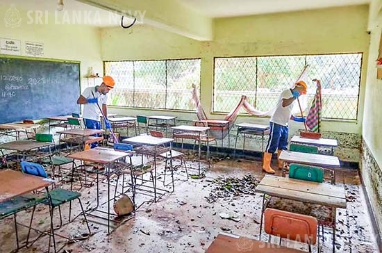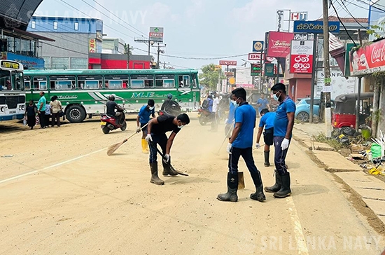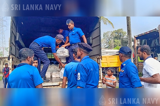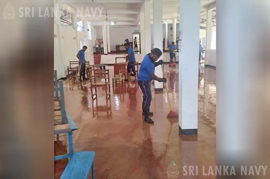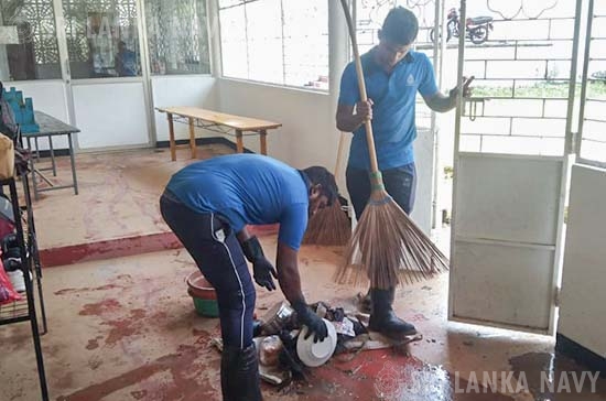 வெள்ளத்தால் பாதிக்கப்பட்ட மக்களுக்கு மனிதாபிமான உதவி மற்றும் அனர்த்த நிவாரணம் உள்ளிட்ட அத்தியாவசிய சேவைகளை வழங்குவதற்காக முழு தீவையும் உள்ளடக்கும் வகையில் ஒரு சிறப்பு திட்டத்தை கடற்படை செயல்படுத்தி வருகின்றது. இதன் கீழ், கடற்படை இன்று (2025 டிசம்பர் 03) மனிதாபிமான உதவி மற்றும் அனர்த்த நிவாரண நடவடிக்கைகளில் பங்களித்தது. இதில் சிலாபம், அத்தனகொட வித்தியாலயம், ஹங்வெல்ல பஹத்கம ரோமன் கத்தோலிக்க வித்தியாலயம்,கடுவளை அபிநவராமய மற்றும் கடுவெல பேருந்து நிலையம் ஆகியவைற்றை சுத்தம் செய்தல்; கண்டி மற்றும் தலத்துஓயா பிரதேச செயலகங்களுக்கு உலர் உணவுப் பொருட்களை பொதி செய்வதில் உதவுதல் மற்றும் நாத்தண்டிய பகுதியில் குடிநீர் கிணறுகளை சுத்தம் செய்தல் ஆகியவை அடங்கும்.