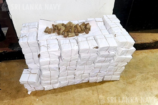 புத்தளம், தளுவ பகுதியில் இலங்கை கடற்படை 2026 பிப்ரவரி 12 ஆம் திகதி நடத்திய சிறப்பு தேடுதல் நடவடிக்கையின் போது, எண்பத்தாறாயிரத்து எண்ணூறு (86800) பீடிகள், ஆயிரத்து இருநூற்று ஐம்பது (1250) கி கிலோகிராமை விட அதிகமான பீடி இலைகள், நூற்று முப்பத்திரண்டு (132) பதப்படுத்தப்பட்ட பீடி இலை பொதிகள், சுமார் நூற்று மூன்று (103) கிலோகிராம் நிலக்கரி மற்றும் ஆயிரத்து ஐநூற்று தொண்ணூற்று நான்கு (1594) ஷாம்பு பாக்கெட்டுகள் மற்றும் ஒரு சந்தேக நபரை (01) ஒரு லொரியுடன் கடற்படையினர் கைப்பற்றினர்.