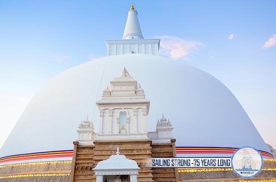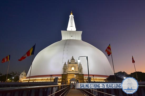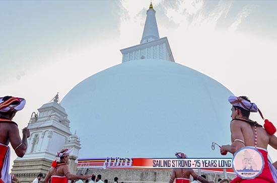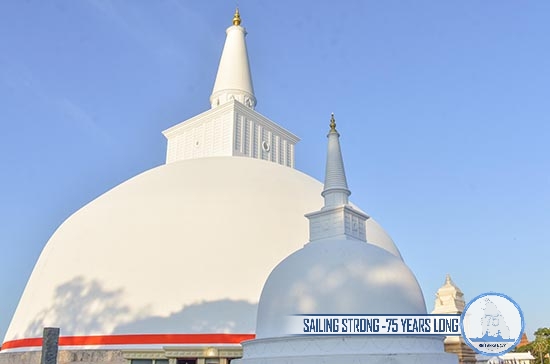 In the evening of 30 October, the Commander of the Navy initiated the ceremonies, after paying his obeisance to Rajakeeya Panditha Ven. Kudagala Ganawimala Thera of Ruwanweliseya. Subsequently, the Kanchuka Puja ceremony took place at the Ruwanweliseya, where the Commander of the Navy flanked by senior officers and members of the Naval Buddhist Association, expressing their spiritual reverence, adorned the pagoda with a Buddhist Flag which was brought to the premises by a colourful procession. The ceremony concluded with the Venerable Maha Sangha performing religious rites to bless the Sri Lanka Navy’s upcoming anniversary as well as Commander of the Navy and naval personnel.