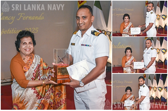 The Sri Lanka Navy recognized the achievements of its personnel in the Navy Public Speaking Competition 2025 and the Admiral Clancy Fernando Memorial Essay Competition 2025 at a special event held on 20 Nov 25 at the Admiral Somathilake Dissanayake Auditorium, Navy Headquarters. The event was graced by the Director General Health Services, Rear Admiral Janaka Marambe and Mrs. Monika Fernando, the spouse of the late Admiral Clancy Fernando.