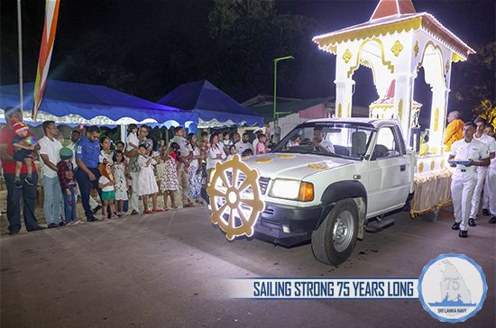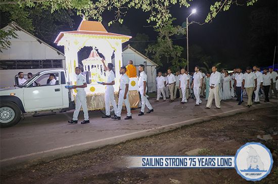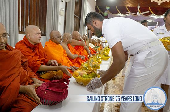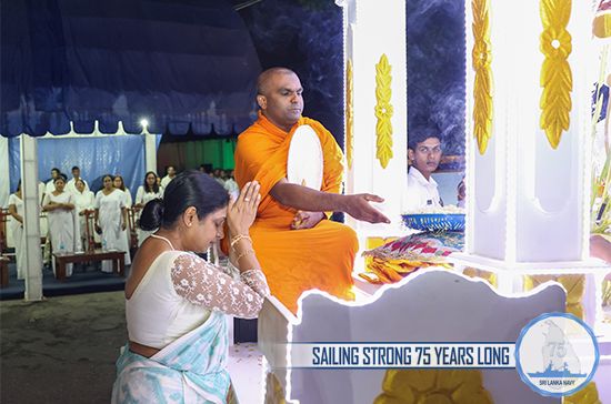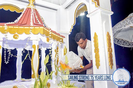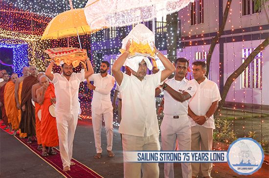 The meritorious events were organized by the Naval Buddhist Association as per the directives of Commander of the Navy. The proceedings of religious rituals had been arranged at the counsel of Chief Incumbent of Vidyawansha Maha Pirivena Minioluwa, Mirigama and Maha Nayake of Sri Lanka Ramanna Maha Nikaya, Agga Maha Panditha Most Venerable Makulewe Wimala Mahanayaka Thera and Karaka Sangha Sabhika of Ramanna Nikaya, Chief Incumbent of Mulagandhakuti Viharaya, Venerable Panditha Kerawalapitiye Sumeda Thera.