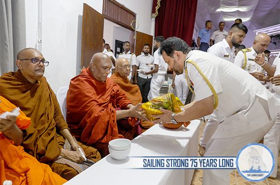 The Sri Lanka Navy conducted an all-night Pirith chanting and alms giving ceremony at the Welisara Naval Complex on 06 and 07 Dec 25, commemorating its 75th anniversary and seeking blessings for all citizens affected by recent adverse weather conditions across the island.