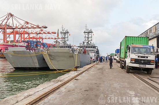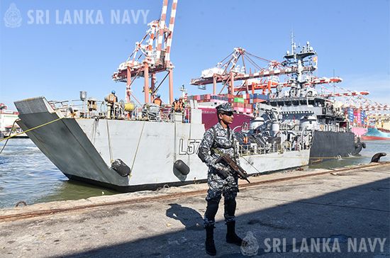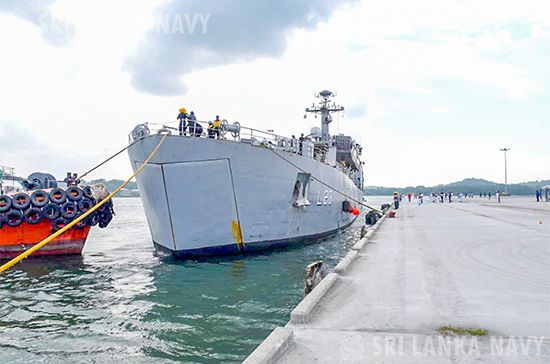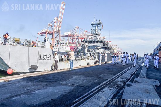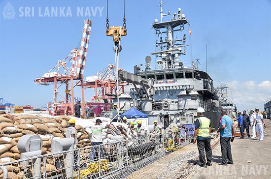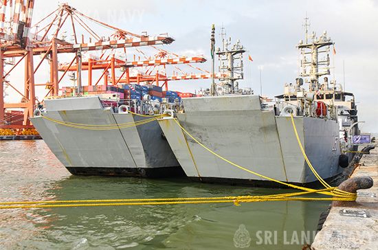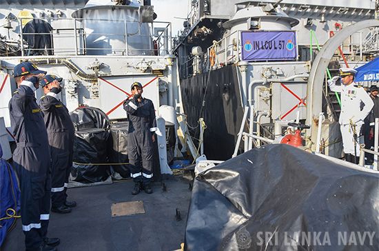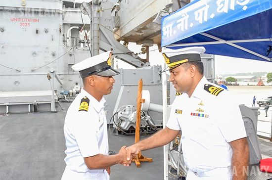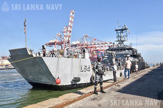 The Indian Navy’s INS GHARIAL and 03 LCUs (Landing Craft Utility), carrying humanitarian assistance for those affected by recent adverse weather in Sri Lanka, arrived in the island on 07 and 08 Dec 25. The Sri Lanka Navy welcomed the visiting ships in compliance with naval traditions at the ports of Trincomalee and Colombo.