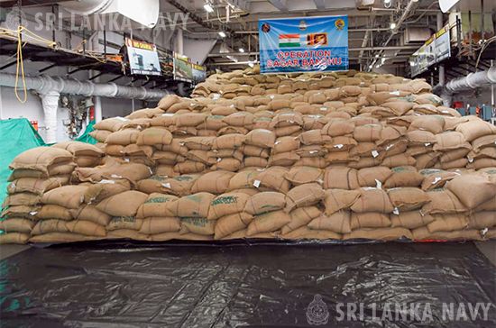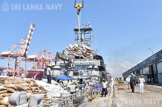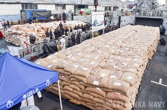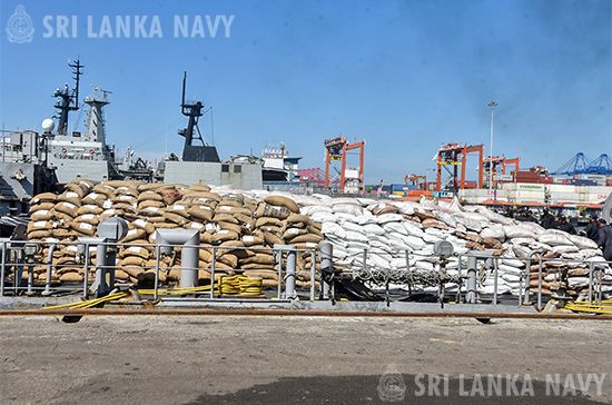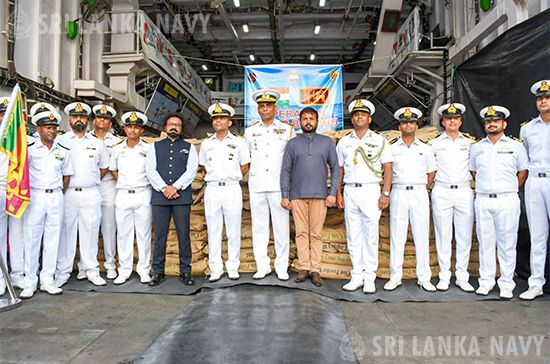 The handover of humanitarian aid was coordinated by the High Commission of India in Sri Lanka and the aid was delivered by Indian Navy’s LCUs; L-51, L-54, and L-57. The occasion was attended by Indian High Commissioner to Sri Lanka, H.E. Santosh Jha, Minister of Trade, Commerce, Food Security and Cooperative Development, Hon. Wasantha Samarasinghe, government officials, Commander Western Naval Area, Rear Admiral Jagath Kumara and Commanding Officers of the ships.