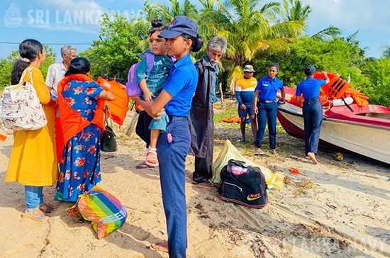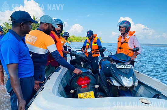 Following the collapse of the bridges over the Nayaru Lagoon in Mullaitivu District, the Sri Lanka Navy initiated a ferry service on 01 December. Utilizing eight (08) dinghies between Nayaru and Kokilai, the Navy has safely transferred 2,377 people and 175 motorcycles.