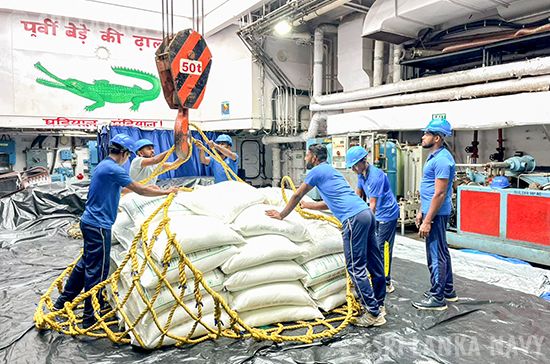 The Navy also facilitated the offloading of relief supplies from Indian Navy ships and continues to support the distribution of this humanitarian aid to affected communities..