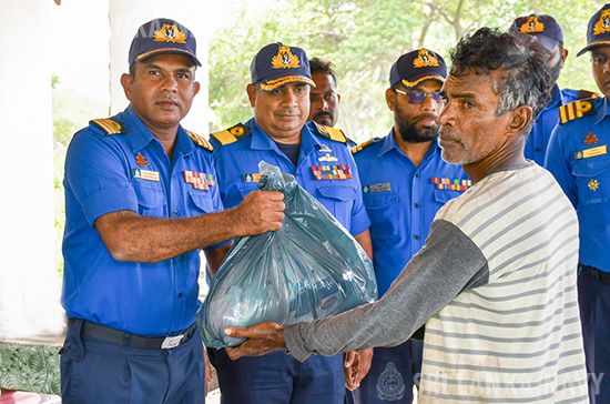 As part of the Sri Lanka Navy’s post disaster recovery efforts, naval personnel were engaged in distributing relief aid to the residents of Pukkulam fishing village on 09 Dec 25. This effort was conducted in collaboration with the Wanathawilluwa Divisional Secretariat in Puttalam. Furthermore, the Navy facilitated safe passage across the Nayaru Lagoon, transporting 450 residents and 33 motorcycles to ensure mobility for the affected area.
