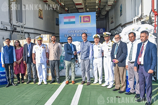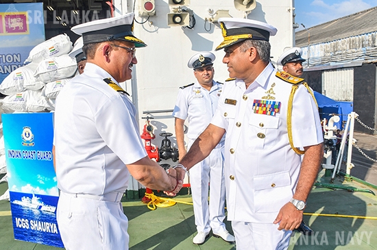 The handover of humanitarian aid was coordinated by the High Commission of India in Sri Lanka. The occasion was attended by the Deputy High Commissioner of India to Sri Lanka, Dr. Satyanjal Pandey, the Deputy Minister of Ports and Civil Aviation, Hon. Janitha Ruwan Kodithuwakku, the Commander Western Naval Area, Rear Admiral Jagath Kumara, the Commanding Officer ICGS SHAURYA, Deputy Inspector General Arun Singh and a group of officials.