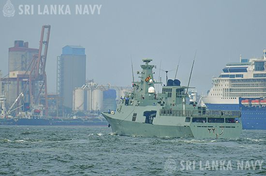 The Royal Navy of Oman Vessel “SADH” which arrived in Sri Lanka for replenishment purpose, departed the island on 12 Feb 26. In accordance with naval tradition, the Sri Lanka Navy extended a customary farewell to the departing ship.
