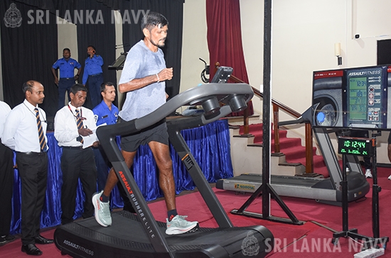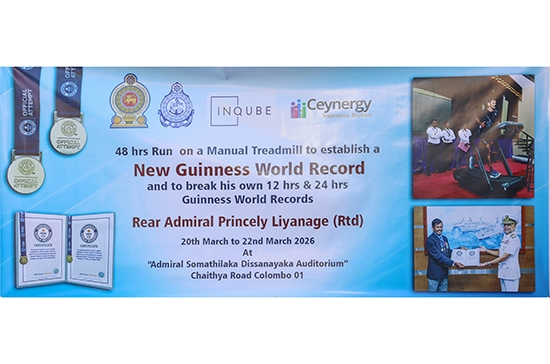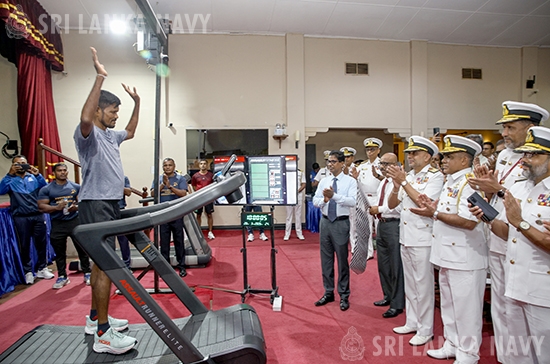 In a remarkable display of endurance and determination, Rear Admiral Princely Liyanage (Retd) commenced his attempt to set a new Guinness World Record today 20 Mar 26. The veteran naval officer began his grueling 48-hour challenge on a manual treadmill at 10:00 AM at the Naval Detachment Colombo, under the supervision of official world record adjudicators.
