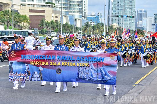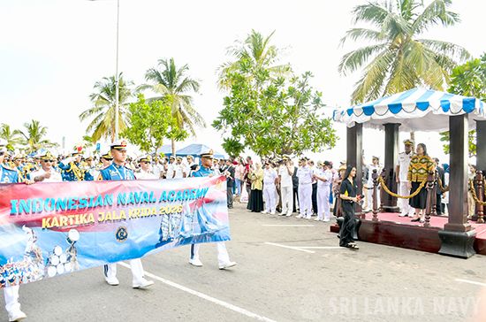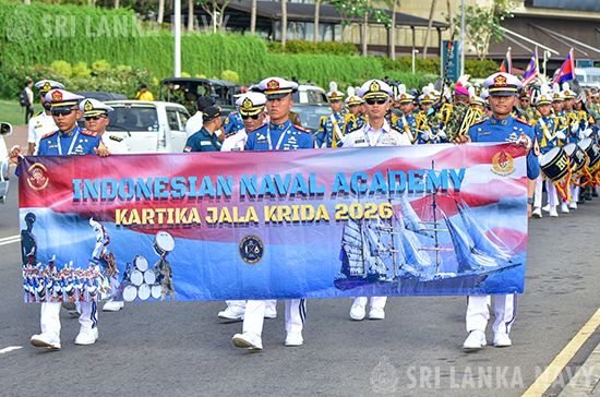 This colorful event took place during the Indonesian vessel’s goodwill visit to the island, serving as a powerful symbol of the long-standing cultural ties and diplomatic friendship between the two nations. The parade featured an impressive contingent, including officer under-trainees from the Indonesian Navy, alongside officer under-trainees representing 26 foreign nations. Joining them were officer under-trainees from the Naval and Maritime Academy, the Sri Lanka Navy Band, and the cultural troupe.