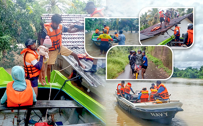 ශ්රී ලංකා නාවික හමුදාව දිවයිනම ආවරණය වන පරිදි අධි අවධානම් ආපදා සහිත ස්ථාන වෙත ආපදා සහන කණ්ඩායම් යොදවා ඇත. අද දිනය (2025 නොවැම්බර් 29) තුල නැගෙනහිර නාවික විධානය මඟින් ත්රිකුණාමලය, පොලොන්නරුව සහ මඩකලපුව දිස්ත්රික්ක තුල; කින්නියා මල්ලපච්චෙනායි, කන්තලේ, මූතූර් සාෆි නගර්, කලාඔය, ගෝමරන්කඩවල, රැල් පාලම, ගල්ලෑල්ල සහ අළුත්ගම බෝගමුව යන ප්රදේශ ආවරණය වන පරිදි සිදුකල ආපදා සහන මෙහෙයුම් මඟින්, ගංවතුරෙන් ආපදාවට පත්ව අවදානමට ලක්ව සිටි පුද්ගලයන් 69 දෙනෙකු මුදා ගැනීමටත්, 1241 දෙනෙකු ආරක්ෂිතව ප්රවාහනය කිරීමටත් කටයුතු කෙරිණි.