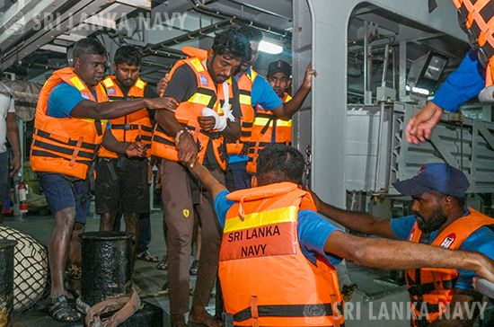 ශ්රී ලංකාවට දකුණ දෙසින්, ගැඹුරු මුහුදේදී හදිසි අනතුරක් හේතුවෙන් අසාධ්ය වූ මෙරට බහුදින ධීවර යාත්රාවක සිටි ධීවරයෙකු කොළඹ සමුද්රීය සෙවීම් හා මුදා ගැනීම් සම්බන්ධීකරණ මධ්යස්ථානයේ සම්බන්ධීකරණයෙන් කඩිනමින් ගොඩබිමට රැගෙනවිත් ප්රතිකාර සඳහා ගාල්ල, කරාපිටිය ශික්ෂණ රෝහල වෙත යොමු කිරීමට නාවික හමුදාව විසින් අද (2026 ජනවාරි 21) උදෑසන කටයුතු කෙරිණි.