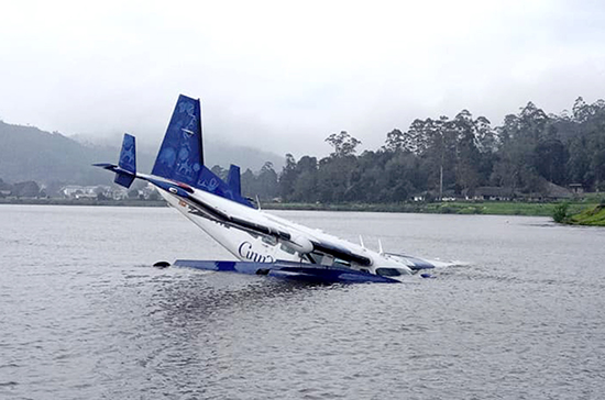 The incident occurred as the seaplane was landing at the lake to take off a group of tourists in the area. The Navy lifesavers from the Rapid Response Rescue and Relief Unit (4RU) on duty at the Gregory Lake premises, immediately initiated a rescue operation. The team successfully rescued both pilots from the seaplane and transferred them to the Nuwara Eliya District Hospital for medical attention.