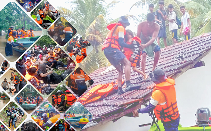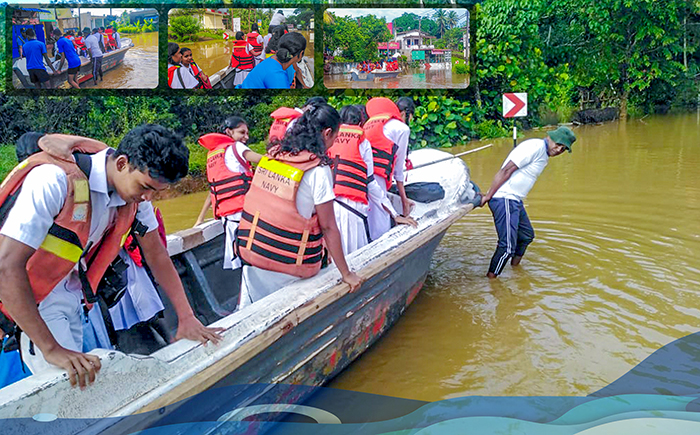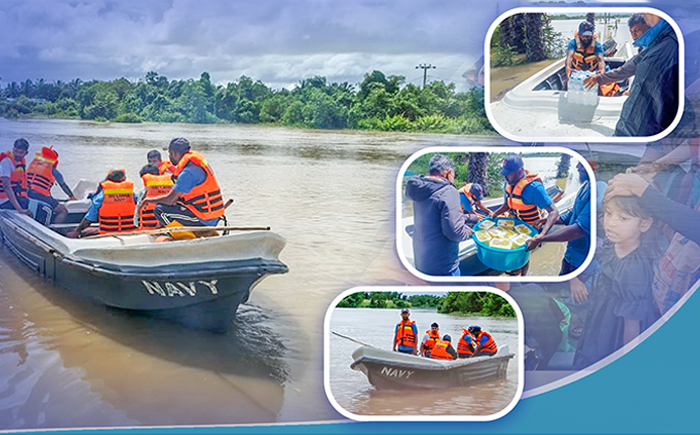 In response to the severe weather conditions, the Navy has mobilized its relief teams to assist those affected by floods in the Thawalama and Nagoda areas of the Galle District. Since 22 Nov 25, these relief teams have been engaged in ongoing operations, utilizing small boats to safely rescue flood-affected individuals and cater to their daily necessities.