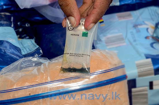 නාවික හමුදාව විසින් ධීවර යාත්රාවේ සිදු කල වැඩිදුර පරීක්ෂාවේදී, එම ධීවර යාත්රාවේ උර දෙකක් තුල (02) පාර්සල් 40 ක අසුරා තිබූ හෙරොයින් මත්ද්රව්ය කිලෝ 46 යි ග්රෑම් 116 ක තොගයක් මෙලෙස අත්අඩංගුවට ගත් අතර, එම මත්ද්රව්ය තොගයේ දළ වීථි වටිනාකම රුපියල් මිලියන 1152 කට අධික වෙතැයි විශ්වාස කෙරේ.