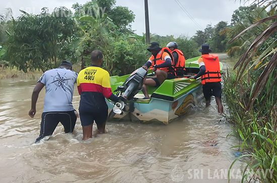 දිවයිනට බලපා ඇති අයහපත් කාලගුණ තත්වය මත ඇදහැලෙන අධික වැසි හේතුවෙන් කලාඔය, වාරියපොල, කොබෙයිගනේ, නච්චිකුඩා මල්ලාවිල්, පොලොන්නරුව ගල්ලෑල්ල, කුරුණෑගල මහව, හලාවත අරියගම, දිවුලපිටිය කොටදෙනියාව, මහනුවර හල්ලොලුව, තලාතුඔය මහමැදගම, කොලොන්නාව සහ කෑගල්ල ගුරුගල්ල යන ප්රදේශයන්හි ගංවතුරෙන් පීඩාවට පත් ජනතාවට සහන සැලසීම සඳහා තවදුරටත් (2025 නොවැම්බර් 29) නාවික හමුදාව ආපදා සහන මෙහෙයුම් අඛණ්ඩව සිදුකරමින් සිටියි.