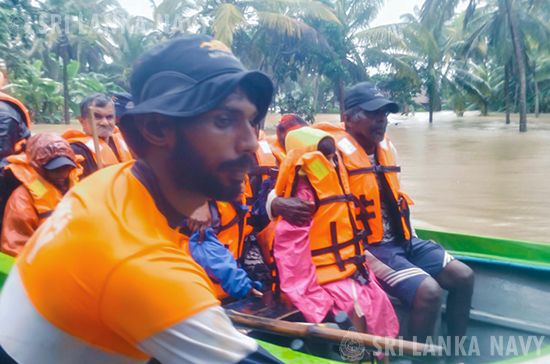 ඒ අනුව, ආපදා කලමණාකරණ මධ්යස්ථානයේ සම්බන්ධීකරණයෙන්, නාවික හමුදා ආපදා සහන කණ්ඩායම් ගංවතුරෙන් සහ පස් කඳු කඩා වැටීමෙන් පීඩාවට පත් පිරිස් මුදාගැනීමේ සහ ආරක්ෂිත ස්ථාන වෙත යොමු කිරීමේ ආපදා සහන මෙහෙයුම් අඛණ්ඩව සිදුකරණු ලබයි.