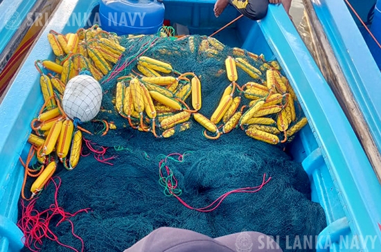 ශ්රී ලංකා නාවික හමුදාව, 2025 දෙසැම්බර් මස 06 සිට 15 දින දක්වා දේශීය ජල තීරය ආවරණය වන පරිදි සිදුකල මෙහෙයුම් මඟින්, තහනම් ධීවර දැල්, පුපුරණ ද්රව්ය භාවිතයෙන් සහ නීති විරෝධි පන්නක්රම භාවිතයෙන් ධීවර කටයුතු සිදුකල පුද්ගලයන් විසිපස් දෙනෙකු (25) සමඟ ඩිංගි යාත්රා දහතුනක් (13) සහ යාපනය විශේෂ කාර්ය බලකාය හා එක්ව සිදුකළ මෙහෙයුමකදී, අලෙවි කිරීමට සූදානම් කළ තහනම් ධීවර දැල් තිස්හයක් (36) සමඟ එක් සැකකරුවෙකු (01) නීතියේ රැහැනට හසුකර ගැනීමට කටයුතු කෙරිණි.