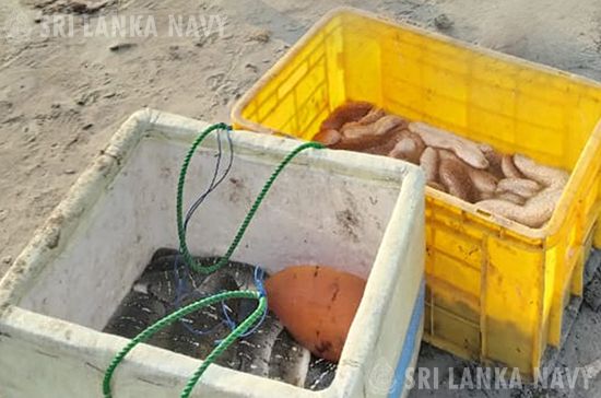 නීති විරෝධී ලෙස මුහුදු කූඩැල්ලන් ඇල්ලූ සැකකරුවන් 04 ක් යාපනය වේන්පූරිනගර් වෙරළ ප්රදේශයේදි නාවික හමුදා භාරයට