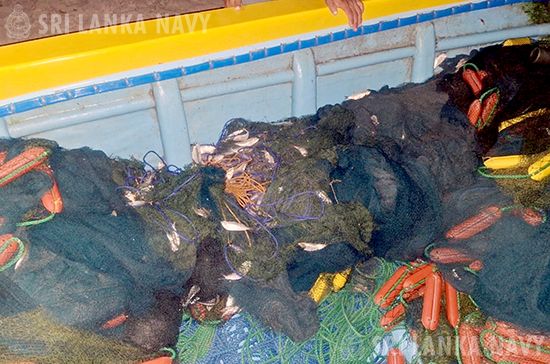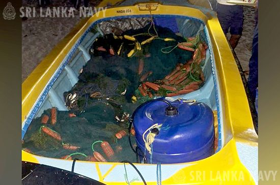 இலங்கை கடற்படை 2026 ஜனவரி 06 முதல் 11 வரை உள்ளூர் கடல் பகுதியை உள்ளடக்கிய நடவடிக்கைகளின் மூலம், தடைசெய்யப்பட்ட மீன்பிடி வலைகள், வெடிபொருட்கள், உரிமங்கள் இல்லாமல் சுழியோடுதல் மற்றும் சட்டவிரோத மீன்பிடி முறைகளைப் பயன்படுத்தி மீன்பிடி நடவடிக்கைகளில் ஈடுபட்ட நான்கு (04) டிங்கி படகுகளுடன் பதின்மூன்று (13) நபர்களையும் கடற்படையினர் கைப்பற்றினர்.