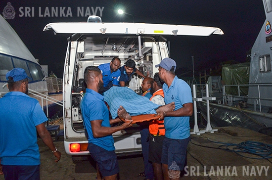 இலங்கையின் தெற்கு கடற்கரையின் ஆழ்கடலில் கடுமையாக நோய்வாய்ப்பட்ட உள்ளூர் பல நாள் மீன்பிடி படகில் இருந்த ஒரு மீனவர், கொழும்பில் உள்ள கடல்சார் தேடல் மற்றும் மீட்பு ஒருங்கிணைப்பு மையத்தின் ஒருங்கிணைப்பின் கீழ் கடற்படைக் கப்பலால் அவசரமாக கரைக்கு கொண்டு வரப்பட்டு, இன்று (2026 ஜனவரி 19,) காலை கடற்படையினரால் சிகிச்சைக்காக காலியில் உள்ள கராப்பிட்டிய போதனா மருத்துவமனைக்கு அனுப்பி வைக்கப்பட்டார்.