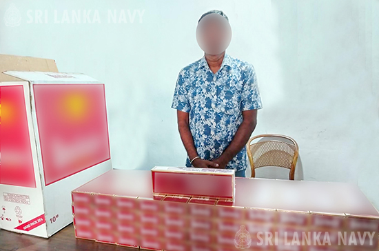 இலங்கை கடற்படை, கோனஹேன பொலிஸ் சிறப்பு அதிரடிப் படையுடன் இணைந்து வத்தளை ஹெதல பகுதியில் நடத்திய சிறப்பு கூட்டுத் தேடுதல் நடவடிக்கையின் விளைவாக, சட்டவிரோதமாக ஒன்பதாயிரம் (9000) வெளிநாட்டு சிகரெட்டுகளை வைத்திருந்து கொண்டு சென்ற ஒரு நபருடன் (01) ஒரு முச்சக்கர வண்டி 2026 பிப்ரவரி 17 அன்று கைப்பற்றப்பட்டன.