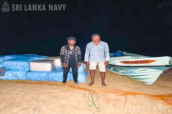 அதன்படி, வடமேற்கு கடற்படை கட்டளையின் இலங்கை கடற்படைக் கப்பலான தம்பபன்னியால் புத்தளத்தில் உள்ள மாம்புரி கடற்கரைப் பகுதிக்கு அருகில் நடத்தப்பட்ட இந்த சிறப்பு தேடுதல் நடவடிக்கையின் போது, குறிப்பிட்ட கடற்கரைப் பகுதியில் சந்தேகத்திற்கிடமான ஒரு டிங்கி படகு (01) ஆய்வு செய்யப்பட்டது. அங்கு, சட்டவிரோதமாக நாட்டிற்குள் கொண்டுவரப்பட்ட சுமார் ஆயிரத்து இரண்டு (1002) கிலோகிராமுக்கும் அதிகமான பீடி இலைகள் (ஈரமான எடை) மற்றும் நூற்றுப் பதினாறு (116) கிலோகிராம் ஏலக்காய் ஏற்றிச் சென்ற ஒரு டிங்கி படகுடன் (01) இரண்டு (02) சந்தேக நபர்களையும் கடற்படையினர் கைப்பற்றினர்.