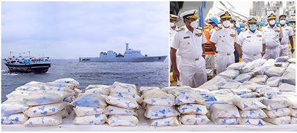 இலங்கை கடற்படையினர் யாழ்ப்பாணம் நெடுந்தீவுக்கு அப்பாற்பட்ட கடற்பகுதியில் இன்று (2023 ஜனவரி 25) நடத்திய விசேட தேடுதல் நடவடிக்கையின் போது, 49 கிலோ கிராமுக்கும் அதிகமான கேரள கஞ்சாவுடன் (ஈரமான எடை) மூன்று சந்தேகநபர்கள் (03) மற்றும் ஒரு டிங்கி படகு கைப்பற்றினர்.