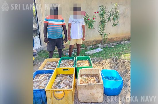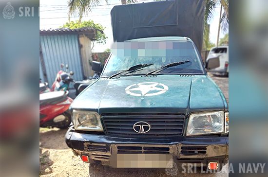 The Sri Lanka Navy, in collaboration with the Police Special Task Force, carried out a search operation in Welanithurai, Jaffna, on 14 Oct 25. The operation led to the arrest of 02 suspects transporting 1,240 illegally harvested sea cucumbers without valid permits, along with the seizure of the cab used for the transport.