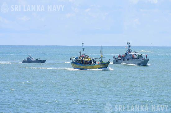 Based on reliable information, the Sri Lanka Navy, with support from the Sri Lanka Coast Guard, intercepted this local multi-day fishing vessel in southern seas after a multi-day surveillance effort.