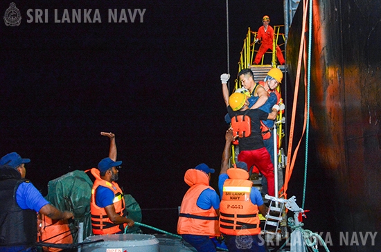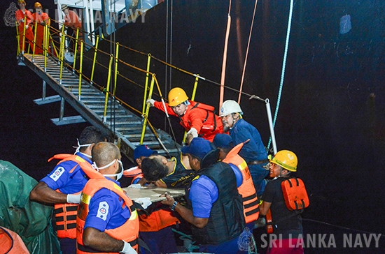 The MV IYO, a Panama-flagged cargo vessel en route from Singapore to Chennai, India, had onboard a Filipino crew member who had become critically ill due to severe abdominal pain. Meanwhile, the Maritime Rescue Coordination Centre (MRCC) Colombo at the Navy Headquarters was alerted by the vessel, requesting naval assistance to bring ashore the crew member to provide urgent medical attention.