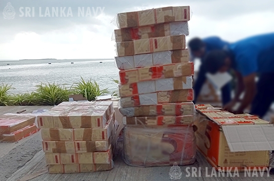 The operation was mounted by the Naval Detachment Uchchamuni of SLNS Vijaya belonging to the Northwestern Naval Command in the Ippanthivu sea area and Karuwalakuda beach. During the operation, naval personnel inspected a suspicious dinghy that had arrived at the Karuwalakuda beach area. The inspection led to the seizure of a significant stock of smuggled pharmaceutical products. Among the seized items were 4605 medicinal pills, 15,627 medicinal ointments, 494 liquid medicinal bottles and 4020 medicinal packets in 17 sacks.