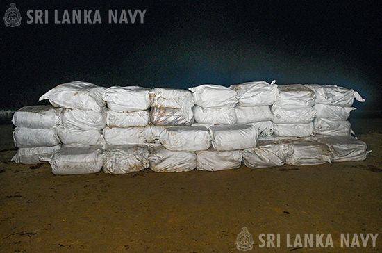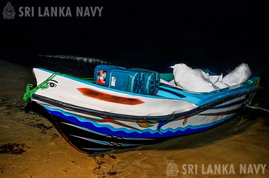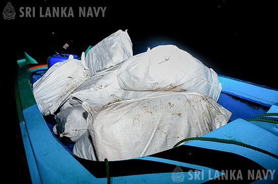 During this operation, conducted by SLNS Gajaba in the North Central Naval Command in the beach area of Olaithoduwai in the dark hours, the consignment of Kendu leaves in a dinghy was seized along with the suspects.