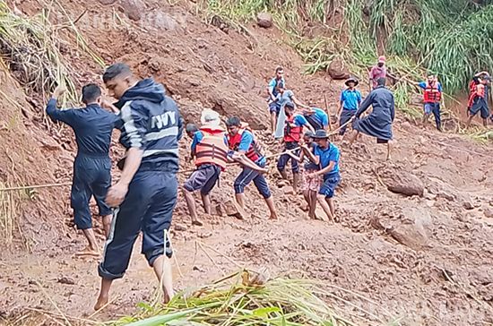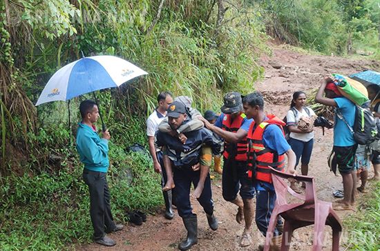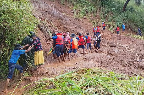 The collapse of an earth mound had blocked the only road to the Unuwinna village in Maoya, stranding seventeen (17) families. The Navy relief team, assisted by local residents, safely guided all individuals, including eighteen (18) children, to secure locations.