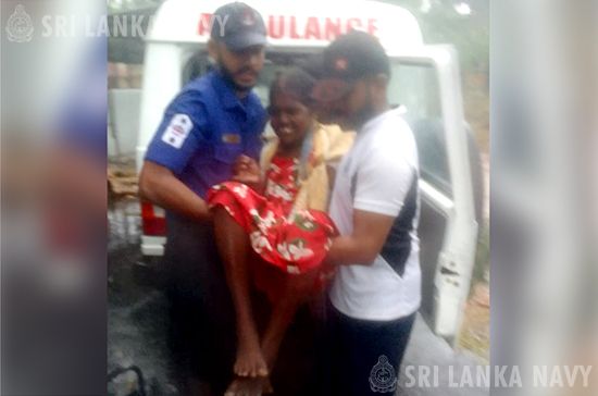 The Sri Lanka Navy evacuated a woman suffering from a heart attack from flood-stranded Punguduthivu Island of Jaffna this morning (28 Nov 25).