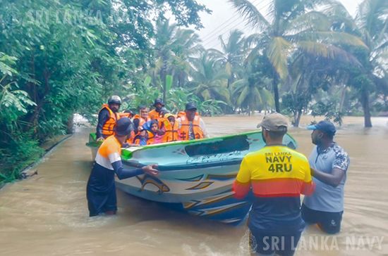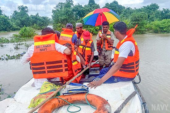 The Eastern Naval Command conducted flood relief operations in Trincomalee, Batticaloa, and Polonnaruwa districts, rescuing 195 people whose lives were at risk and safely transporting 1,632 others. Meanwhile, the Northwestern Naval Command carried out similar operations in Puttalam and Kurunegala districts, rescuing 580 people and ensuring the safe transport of 3,924 individuals.
