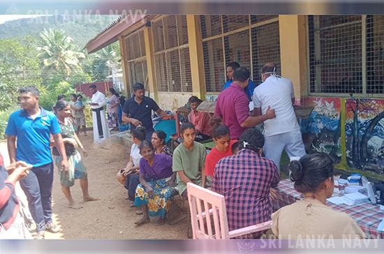 A medical clinic was organized by the Amithirigala Medical Office of Health at Gurugalle Junior College, Avissawella, on 30 Nov 25, to support residents affected by severe flooding triggered by adverse weather conditions. The Navy rendered assistance for this cause, providing essential support and relief to the communities impacted by the floods.