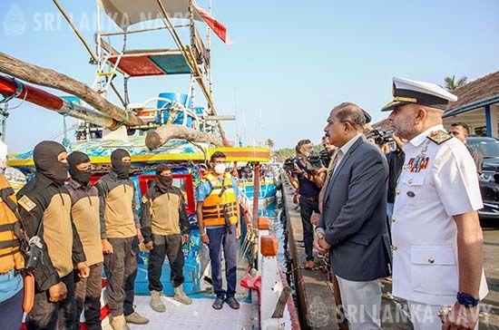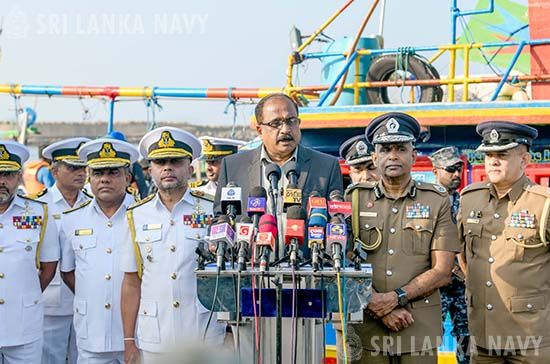 Building on its success in seizing major narcotic stocks in 2025, the Navy continued to support the “A Nation United” National Mission in 2026. In continuation of these efforts, during an operation conducted on the high seas south of Sri Lanka, the Navy apprehended eleven (11) suspects aboard two local multi-day fishing trawlers suspected of drug smuggling.