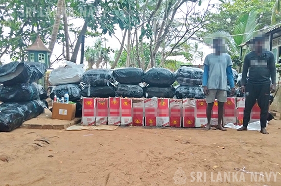 The search operations were conducted by SLNS Vijaya of the Northwestern Naval Command, working alongside the Coast Guard, leading to the recovery of 25 sacks of Kendu leaves weighing over 992kg, 14 packs holding 140,000 foreign cigarettes and a box of pesticides. It is suspected that smugglers would have abandoned the stock due to heightened naval surveillance in the areas.